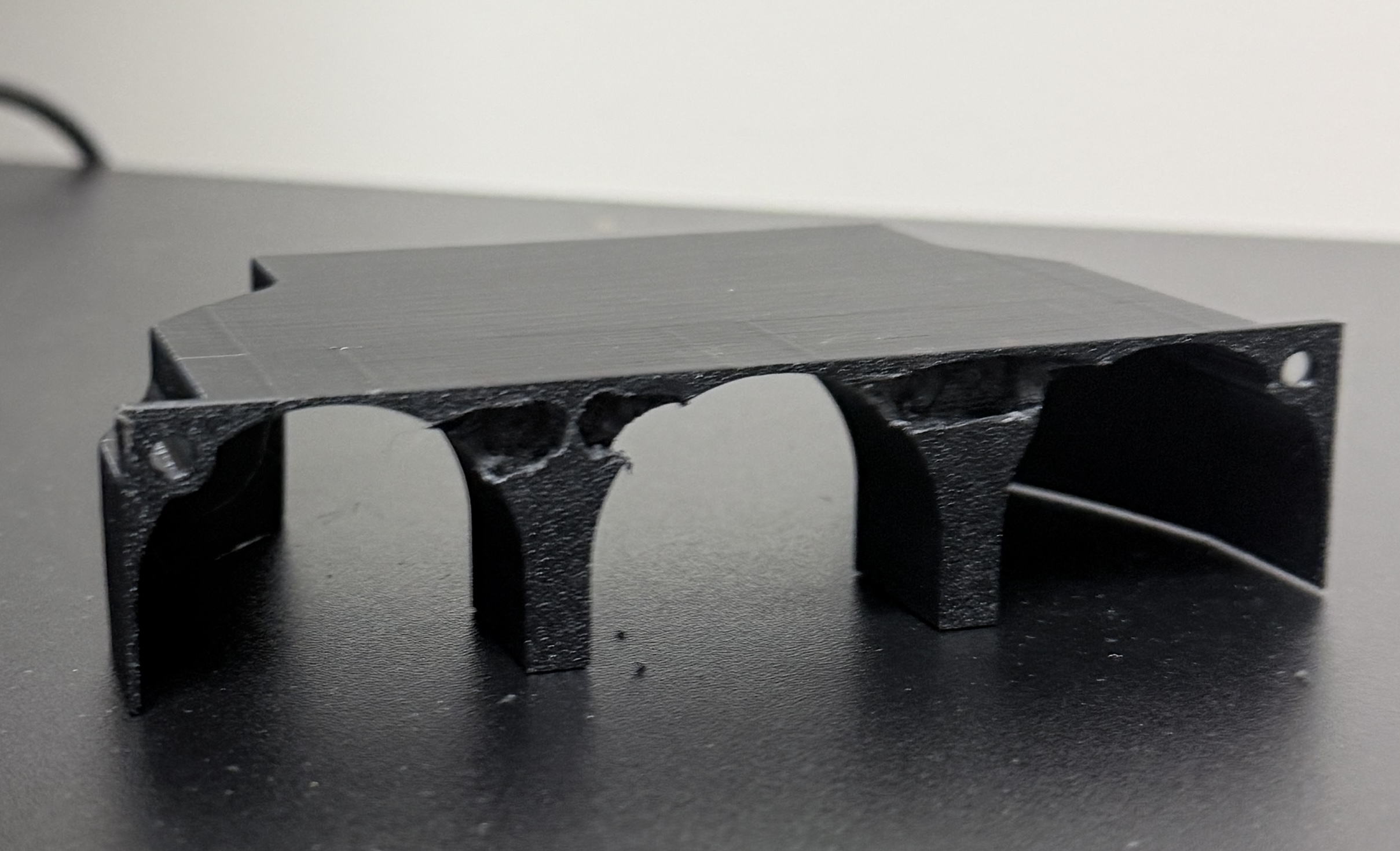 The 3D printed duct installed and ready for testing.